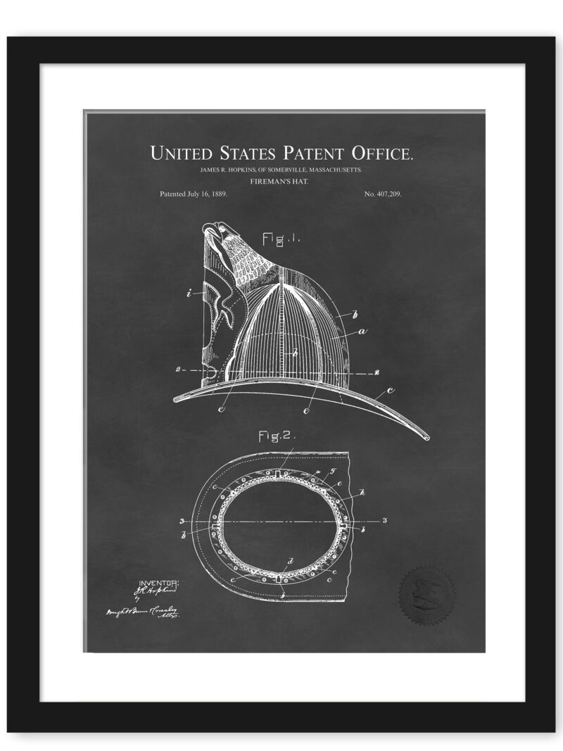 This exclusive print features the original 1874 patent of the Fireman’s Helmet by J.R. Hopkins, a hallmark of firefighting history. With its intricate details and historical significance, this artwork is more than a print—it’s a celebration of the bravery of firefighters past and present. This collector’s piece is an ideal addition to any home or firehouse and makes a thoughtful gift for fire service members or history buffs.