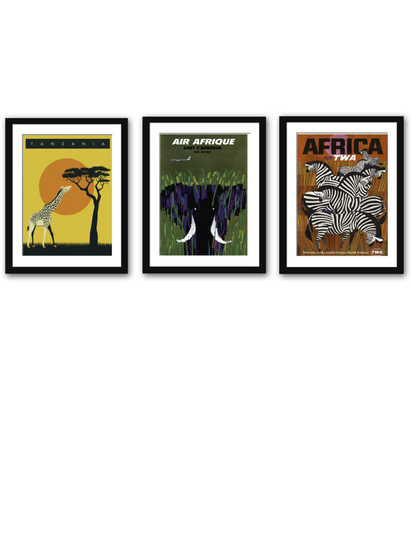 Immerse yourself in the allure of Africa with this stunning set of vintage travel posters. Each piece celebrates the continent’s rich wildlife and scenic landscapes, from Tanzania’s majestic giraffes to the iconic zebras of TWA’s advertisements. These reproductions capture the vibrant essence of 20th-century travel art, making them a perfect addition to any home or office seeking a touch of exotic flair.