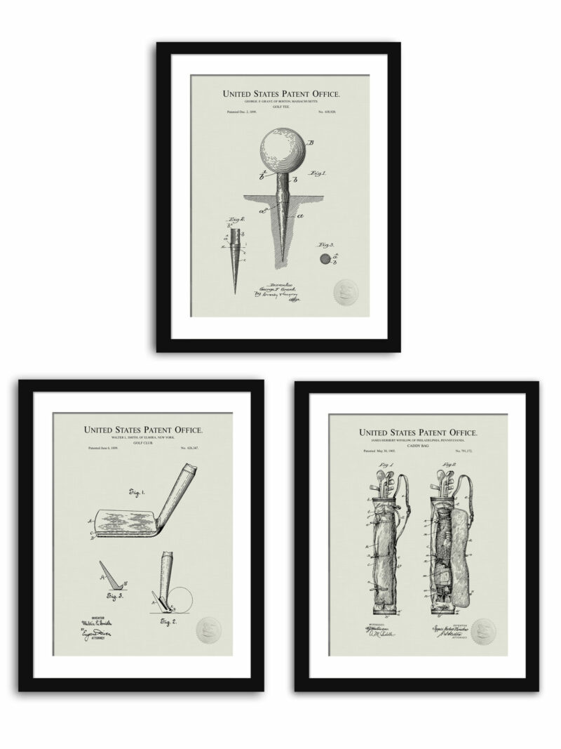 Celebrate the rich history of golf with our exclusive collection of vintage golf equipment patents, dating from 1899 to 1905. This trio includes patents for a golf tee, a golf club, and a caddy bag, each beautifully rendered to showcase the ingenuity behind early golf equipment. Ideal for any sports enthusiast or historian, these prints serve as a reminder of the game’s classic and sophisticated past. They make a perfect gift for golf lovers, adding a touch of vintage charm and historical interest to any office, study, or living space.