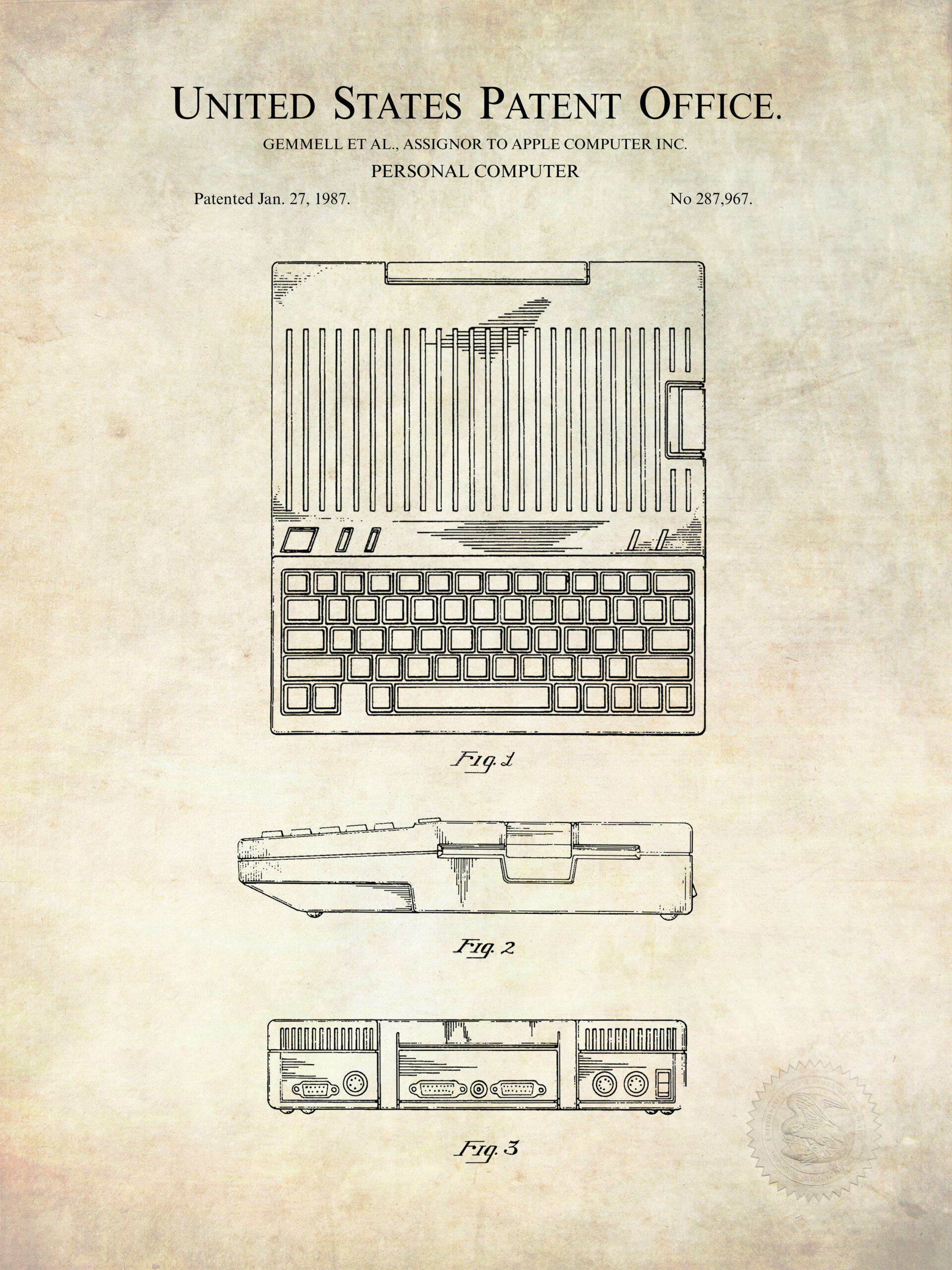 This collection showcases reproductions of early Apple computer patents, capturing the groundbreaking designs of the Apple IIc, Apple III, and the original Macintosh. These patent artworks not only highlight technological innovation but also serve as unique decor pieces for any tech lover’s space. Ideal for home offices or as a distinctive gift for Apple enthusiasts and collectors of vintage tech memorabilia.