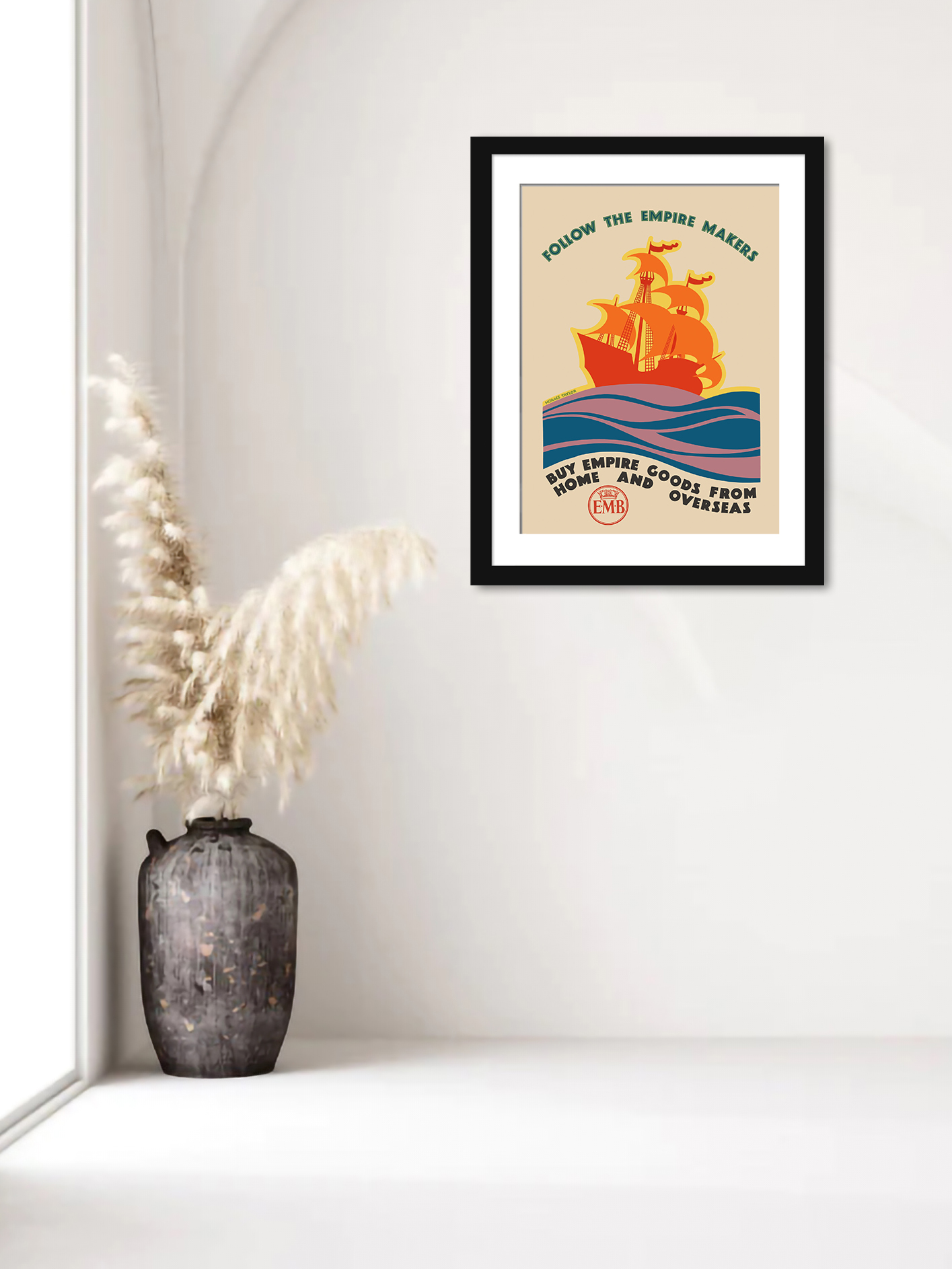 “Follow The Empire Makers” is a compelling vintage poster designed by Horace Taylor, encouraging the purchase and support of Empire goods. Featuring bold, vibrant colors and iconic imagery, this piece not only reflects the political and economic sentiments of the 1930s but also serves as a distinctive decor element for collectors of historical and political memorabilia.