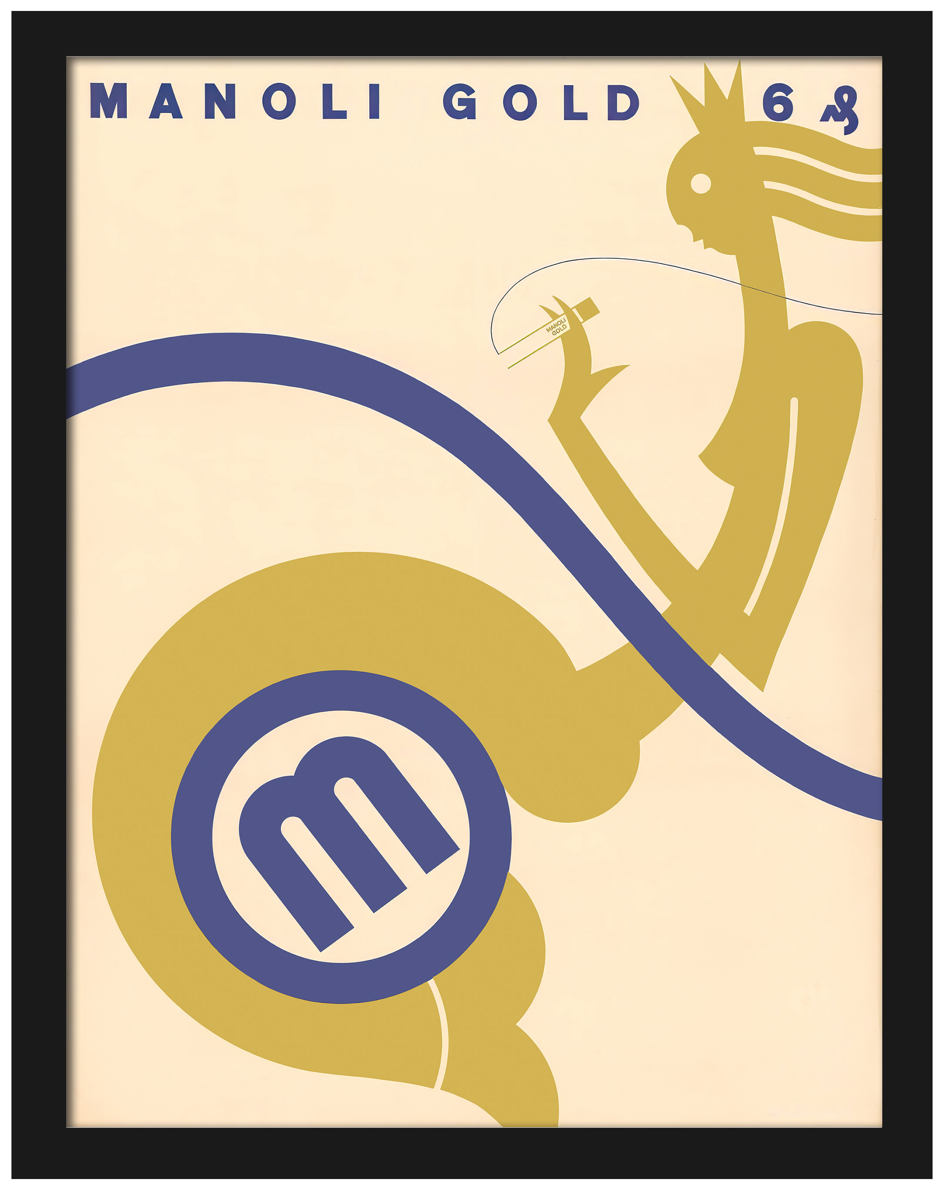 Reproduction of Wilhelm Deffke’s 1929 Manoli cigarette poster, classic art deco.