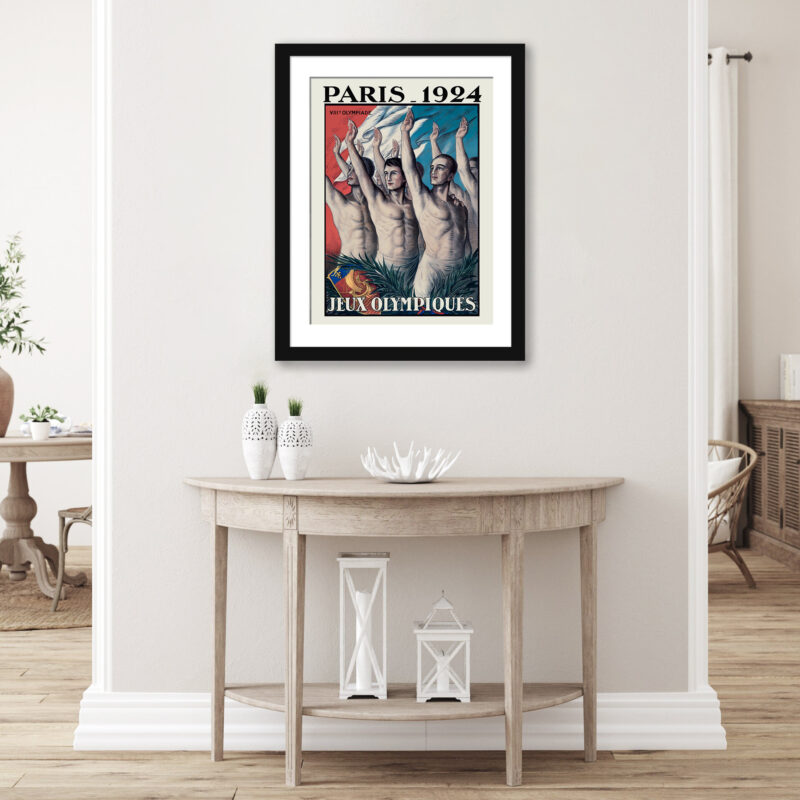 The print is a beautiful portrayal of the Games’ values, merging art with the celebration of sport. Ideal for collectors, historians, or as a sophisticated addition to any space, this poster pays homage to a bygone era of international competition and camaraderie. Whether as a gift for an Olympic enthusiast or as a decorative piece in a sports club, library, or study, this print is sure to inspire and impress.