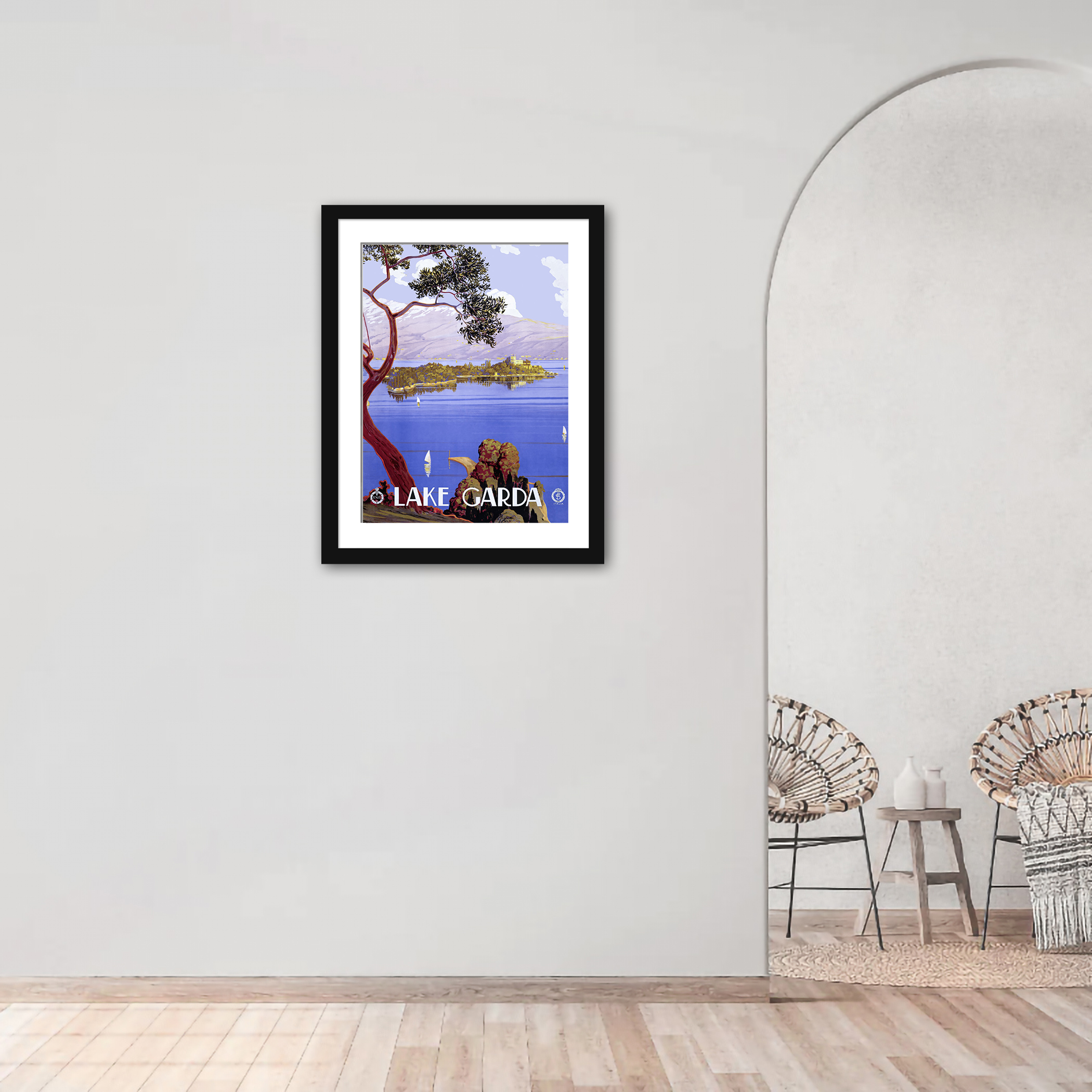 Dive into the timeless beauty of Lake Garda with this exquisite 1920s print by Severino Tremator. The serene blues and verdant hues capture the essence of Verona’s enchanting lakeside. This poster is not just a piece of art; it’s a slice of Italian history, perfect for those who appreciate the golden age of travel or are looking to add a touch of vintage elegance to their home decor.