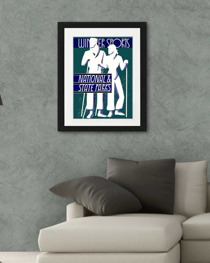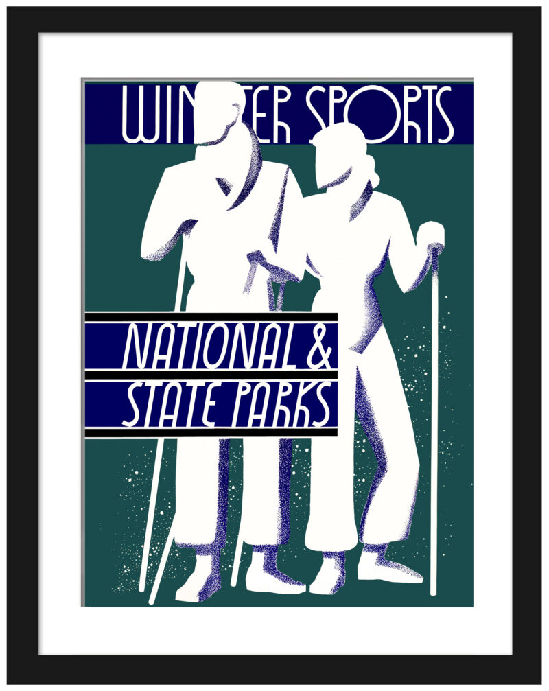 Celebrate the golden age of national parks with this exquisite reproduction of Dorothy Waugh’s 1934 poster, ‘Winter Sports’. Capturing the spirit of adventure and the beauty of the great outdoors, this vintage print brings a historical and artistic touch to any home decor. Perfect for enthusiasts of national park history, vintage artwork collectors, or as a unique gift, this poster evokes the thrill of winter sports and the natural beauty of America’s national and state parks.